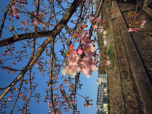 津久井川沿いの河津桜も一部咲き
