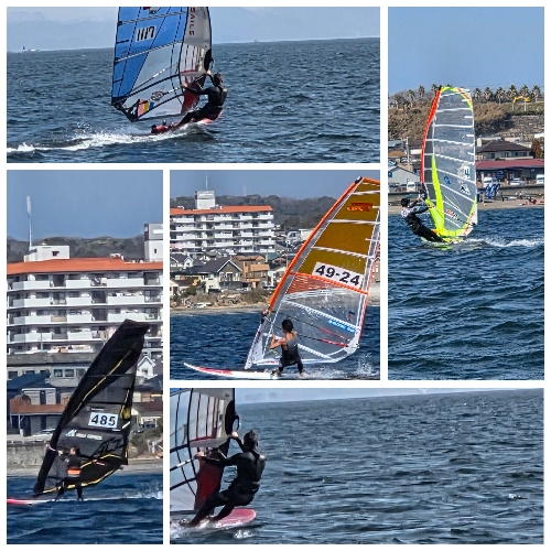 一気に吹き始めた南西風、ブローきつめで、セイル選択が難しいコンディション!7.0前後のセイル。iqfoil 倉鹿野選手&井上選手は.もちろん8.0 iqfoil セイル!